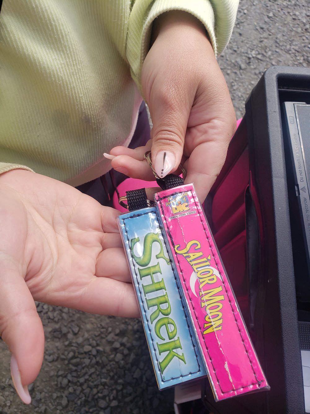 Dangles are made from DVD/VHS & vinyl scraps from past custom orders. Sight unseen but the images above are just examples and not the exact items you'll receive.